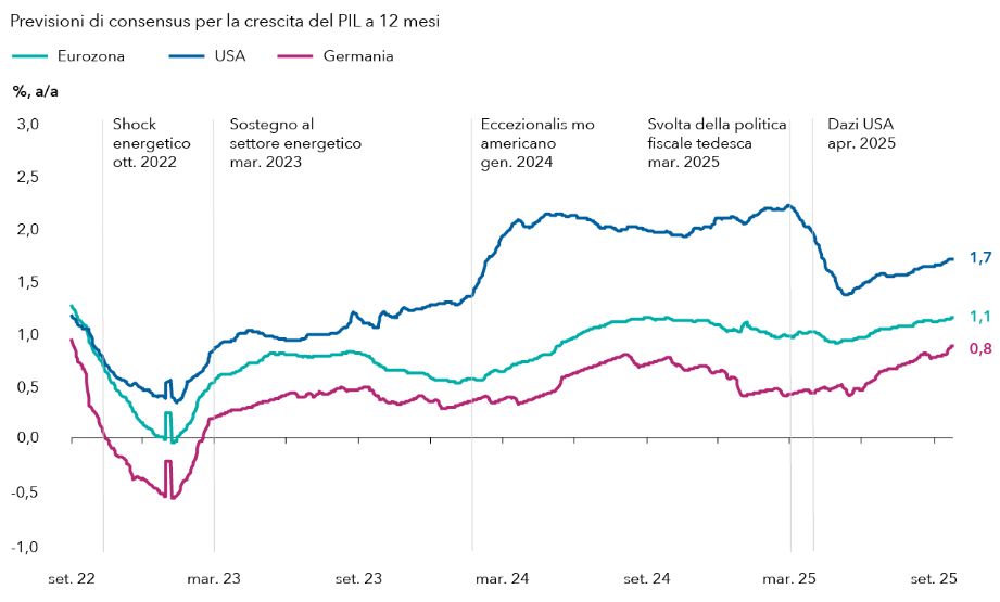 Nota: sulla base delle previsioni di consensus sul PIL per l'anno in corso e il prossimo