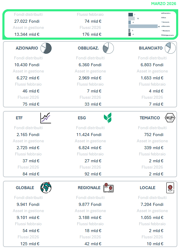 © 2026 Quantalys. Tutti i diritti riservati. Le informazioni fornite sono di proprietà di Quantalys Italia Harvest Group; possono non essere esaustive e non costituiscono raccomandazione o sollecitazione all’investimento. Quantalys Italia Harvest Group non si assume alcuna responsabilità per le eventuali conseguenze derivanti da decisioni assunte o iniziative intraprese sulla base delle informazioni riportate nel presente documento. Tutti i dati sono aggiornati alla data indicata e attribuiti a Quantalys Italia Harvest Group, salvo diversa indicazione.