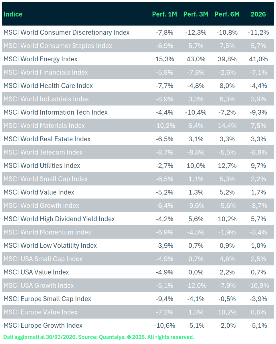 Mercato azionario Settori e Stili